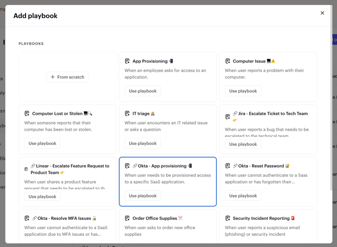 Get clear playbook names "IT request" is not specific enoug. "Okta App Access requests" or "Software access handled in Jumpcloud" is specific enough.