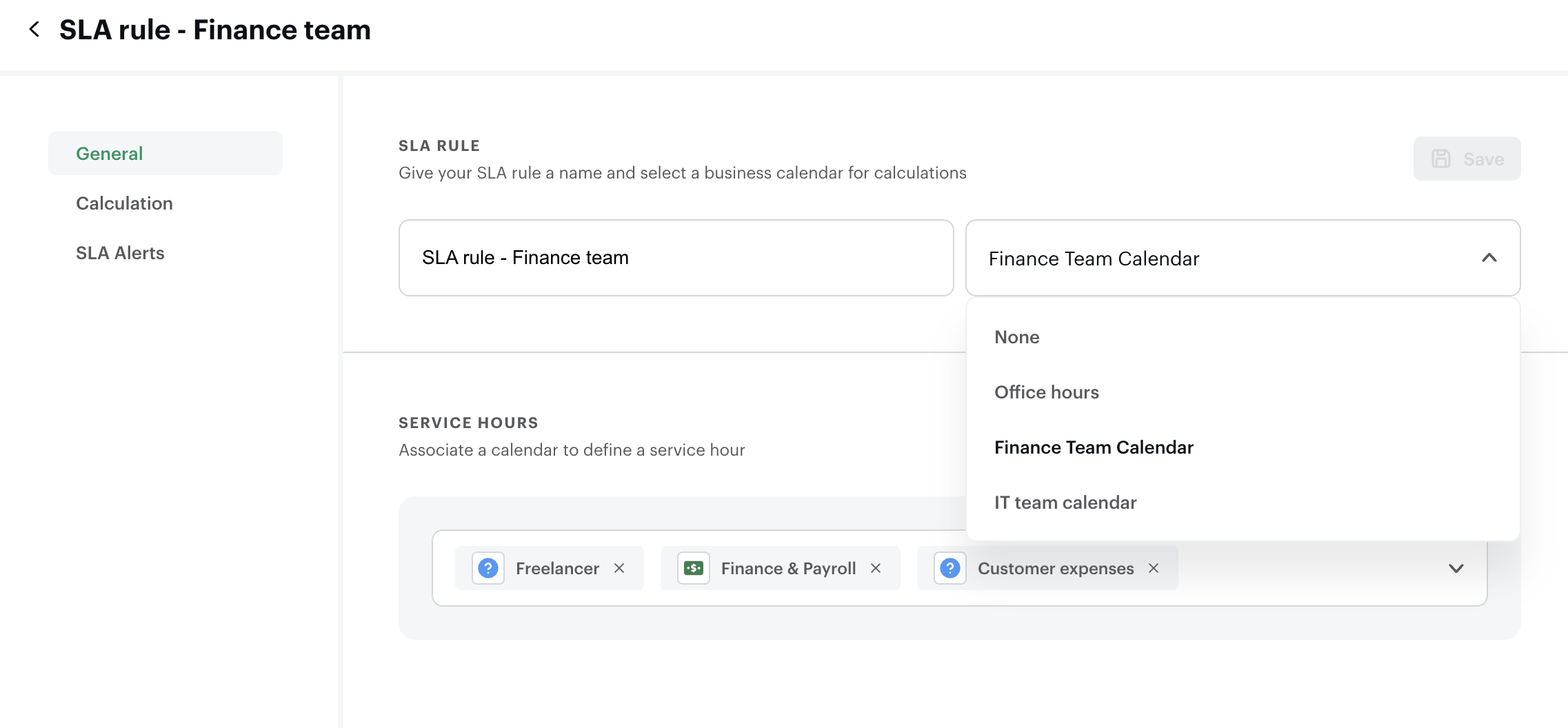Yes. Create one SLA Rule per priority or service tier, and attach the relevant calendar to each. For example, your P1 rule can use a 24/7 calendar while your standard requests use a Mon–Fri 9am–6pm calendar.