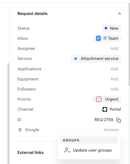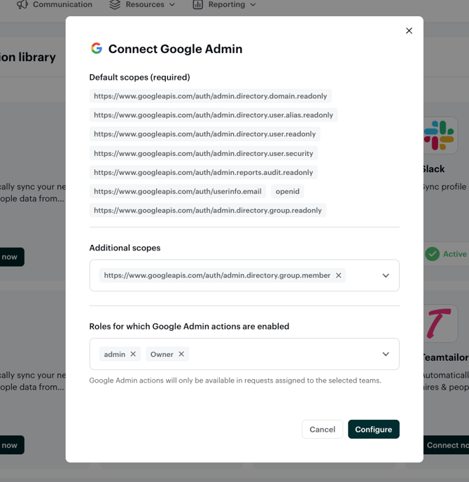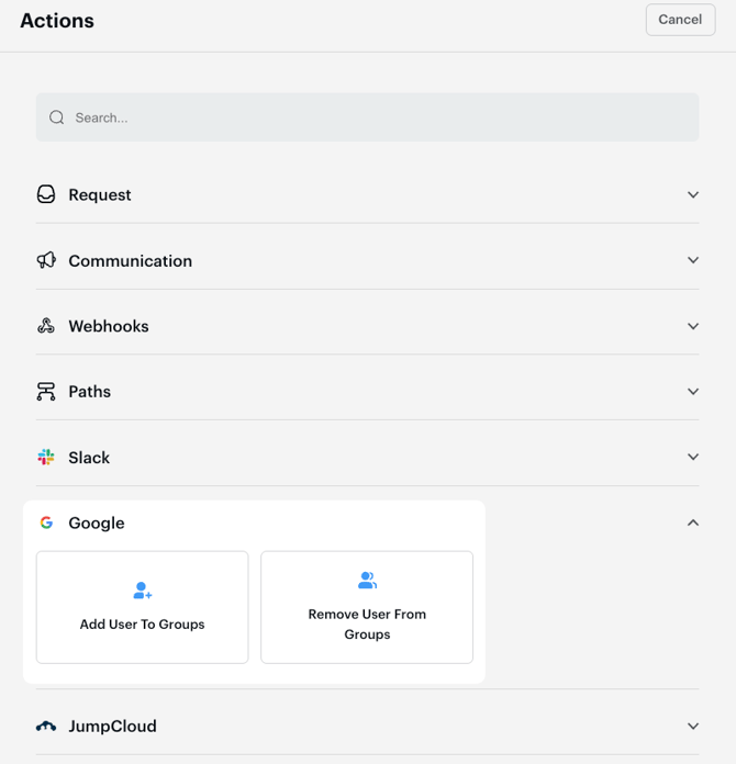 Google Admin actions will only be available in requests assigned to the selected teams. Users with roles that are not selected will not see or be able to execute these actions.