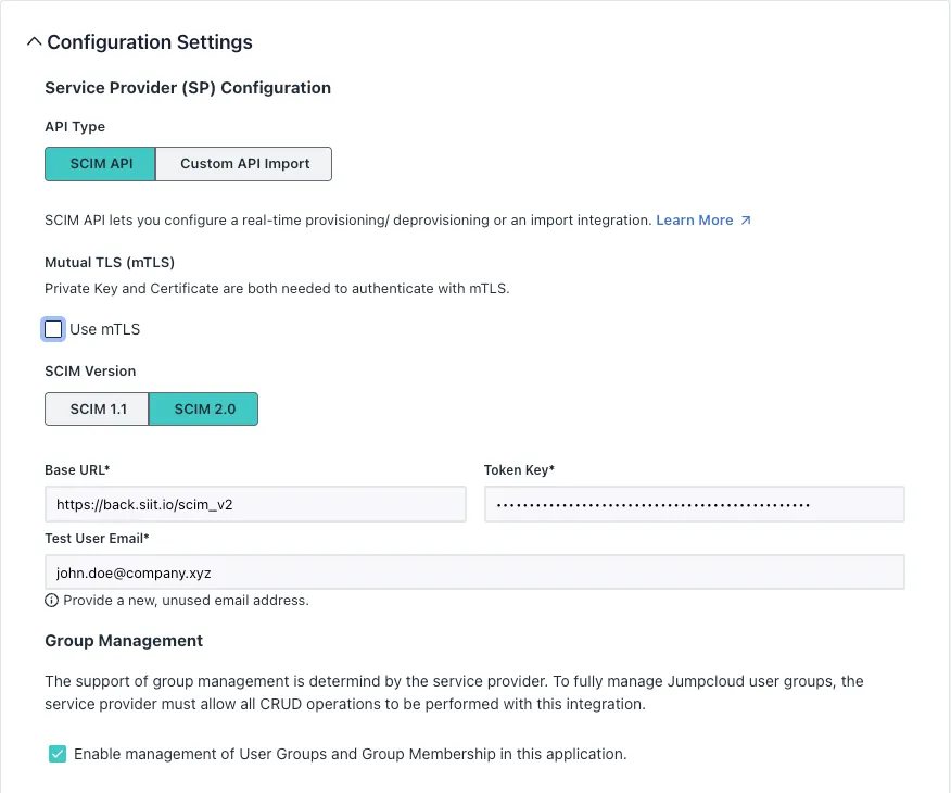 https://back.siit.io/scim_v2) - Token Key (a long encrypted string)