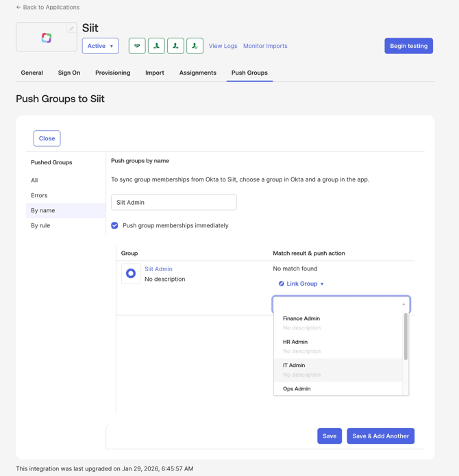 - Push Groups – Push Okta groups to Siit and link them to Siit roles