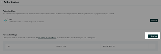Go to Settings → Personal → Authentication in your Siit dashboard and generate an API key. You need to be an Owner or an Admin with "Public API" permissions.