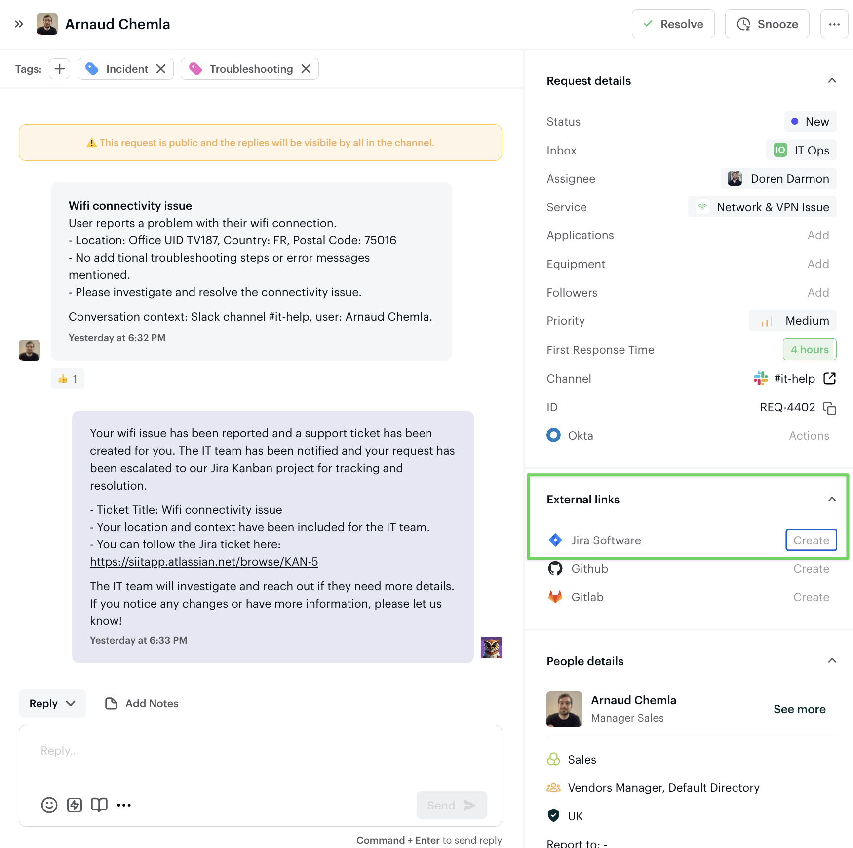 This ensures that when a request is escalated, it lands in the correct structure in Jira.