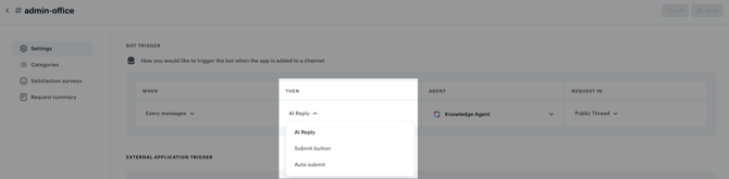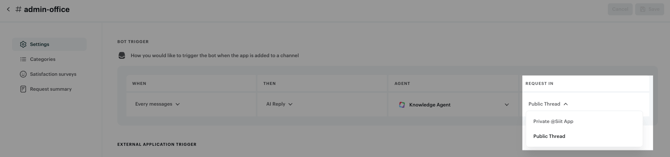 โ ๏ธ Remember that if sent on a public Slack channel, the first message of the requester (before the request is created) will always be visible in the channel.