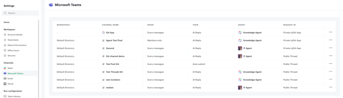 Once Microsoft Teams is connected to Siit, you can configure how Siit behaves both in the Siit app and in your Teams channels.